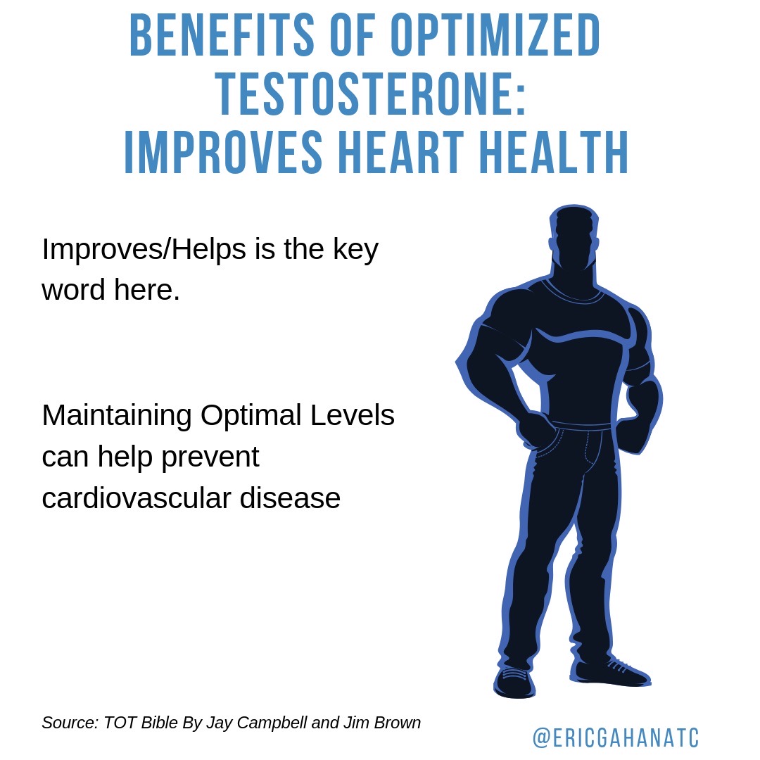 Recent studies have found that low testosterone levels were responsible for an increased risk of heart ailments. (source: The TOT Bible)